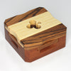 This puzzle has concave areas on the red wood at the bottom, with two sides having small concaves and two sides having large ones. (In the regular version, all four sides have small concaves.) Additionally, there is a noticeable filled resin pocket, which is why this puzzle is classified as 2nd grade. Initially, we gave it as a gift to a friend. A few years later, our generous friend returned the puzzle, wishing for it to be enjoyed by puzzle enthusiasts. We are now putting this puzzle up for auction. For more details about the puzzle, please refer to the regular version's page.
