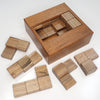 After making the Euroka 10x3, Juno decided to use up the wood offcuts because it was such a waste. He was able to get a bit under 64 square elements, so he designed a puzzle consists of 56 elements. He achieved a total of 56 elements by omitting cuboid-shaped pieces in all combinations of squashed tetra cubes.