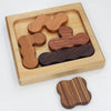 This is a fun puzzle that even young children can enjoy playing with. The goal is simple and easy to understand at first glance: to fit five pieces into the tray. The tray has a concave on both sides, one is square, and the other is rectangular.